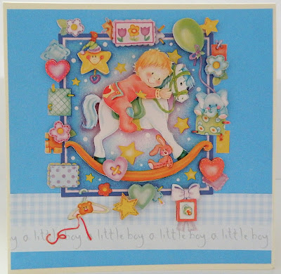 W trakcie choroby, w chwilach lepszego samopoczucia, zrobiłam na zamówieie kartki "dzieciowe". Pokaże, bo wstyd normalnie, że od tak dawna nic kompletnie nie pisałam i nie pokazywałam... Zdjęcia takie nijakie, bo światła dobrego nie ma, a i ze mnie fotograf jak z koziej ... trąba :)