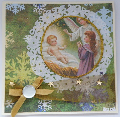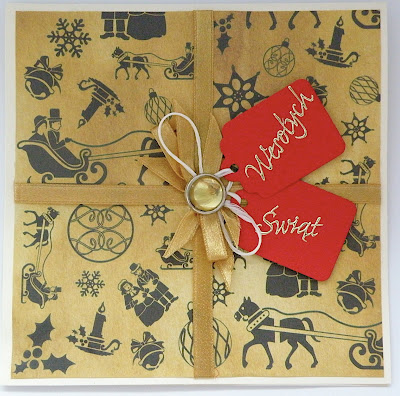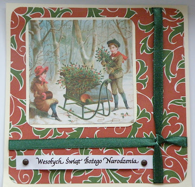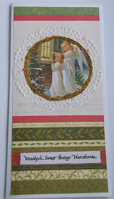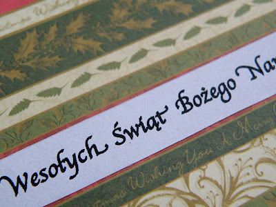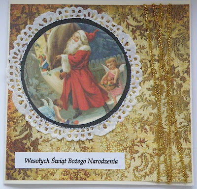 Ostatnia z ostatnich. I koniec i kropka. Do przyszłych świąt Bożego Narodzenia nowych świątecznych nie będzie. Przepraszam za jakość, ale to światło... Milion opcji w aparacie, ale jak światło jest kiepskie to... wyniki można podziwiać poniżej. A musiałam zrobić zdjęcia wczoraj, bo dziś kartka została nadana. Ja wiem, że póżno... ale liczy się pamięć... No i moja wiara w możliwości poczty polskiej :)