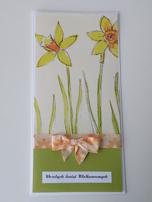 W czerwcu idę na operację do szpitala, i zbieram dokumentację potrzebną do operacji. Ci co musieli mieć kontakt ze służbą zdrowia wiedzą, ile to papierów. Ci co nie wiedzą, lepiej, żeby się dowiadywać nie musieli :) Tak czy siak, zbieram te papiery i zbieram, a większość ma rozmiar a5. No i w czym to nosić? Teczki w tym rozmiarze nie występują, bo nie i już. No to postanowiłam sobie taką teczkę zrobić :) Zwykłą papierową teczkę pociełąm, pooklejałam, poozdabiałam i oto efekt. Wszystko co na teczce, musiało być płaskie, bo wszelkie wypukłości, kwiaty itd uległy by w torebce destrukcji. Tak więc płasko :) No i dodatkowo teczka miała być na zaklinanie wiosny więc idelanie wpasowała się w nowe wyzwanie Diabelskiego Młynu. Zajrzyjcie tam koniecznie, zobaczcie prace moich koleżanek, oraz koniecznie weźcie udział w wyzwaniu, bo nagroda diabelsko kusząca.