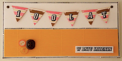 A teraz pokaże kartkę dla teścia, którą zrobiłam z okazji jego imienin. Ja wiem, że napis jest łudząco podobny do stempla z Polpompu, ale mam nadzieję, że niekomercyjne wykorzystanie pomysłu nie jest łamaniem żadnych praw?
