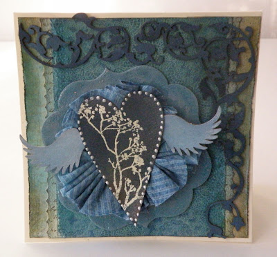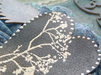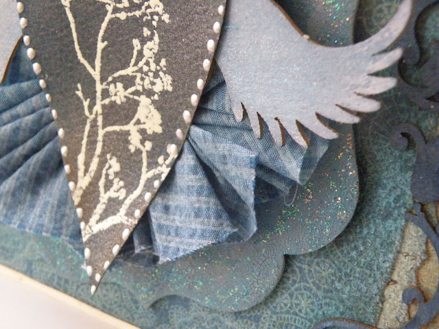 W niedzielę z Novinką wybrałyśmy się na warsztaty oragnizowane w Scrap Studio, a prowadzone przez przekochaną Dryszkę, skarbnicę wiedzy na temet mediów. Jeszcze nigdy, w jednej pracy nie użyłam tylu mgiełek, cracli i innych preparatów. Miałam też swój pierwszy raz... pierwszy raz z embossingiem na gorąco. I jeszcze nigdy nie miałam aż tak niebieskich dłoni. Ale było warto, po pierwsze by poznać osobiście Drychę, po drugie żeby się pobawić mediami, po trzecie by miło spędzić czas na kreatywnej zabawie. A oto i już efekt warsztatów: (z góry przepraszam za ilość zdjęć, nie umiem wybrać tych naj)