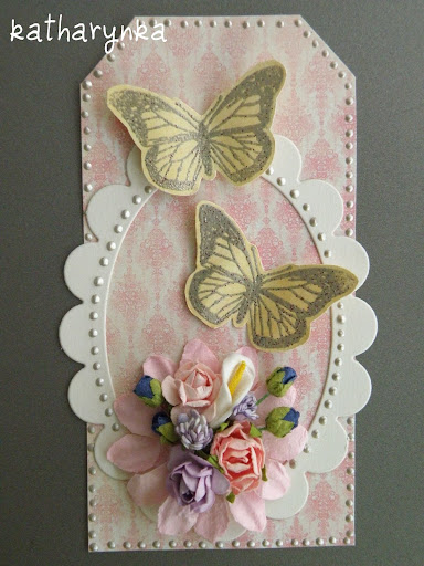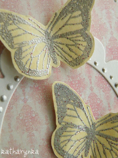 kwieciście i z embossingiem. U mnie bukiecik wiosenny i embossingowane motylki